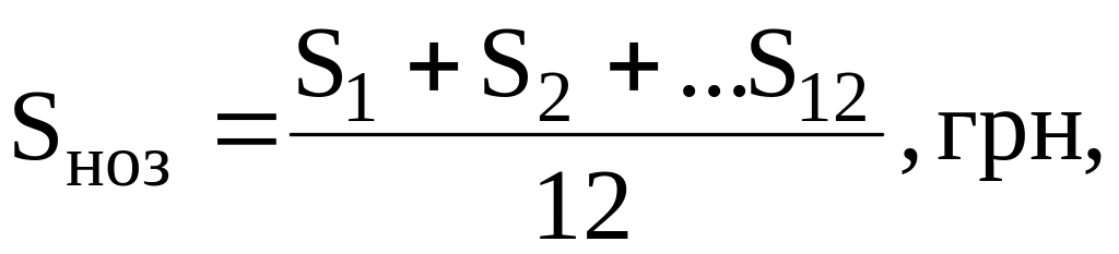 де S1, S2, …S12 – середньомісячні залишки нормованих оборотних коштів, грн.