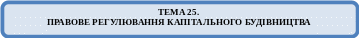 Приступаючи до вивчення цієї теми студенти повинні опрацювати низку актів законодавства, що складають інститут капітального будівництва. Студентам слід з’ясувати основні положення про капітальне будівництво як комплексної галузі економіки сфери матеріального виробництва, та як форму інвестиційної діяльності.