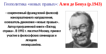 - •3. Геополитика европейских континенталистов («новые правые» и др.)