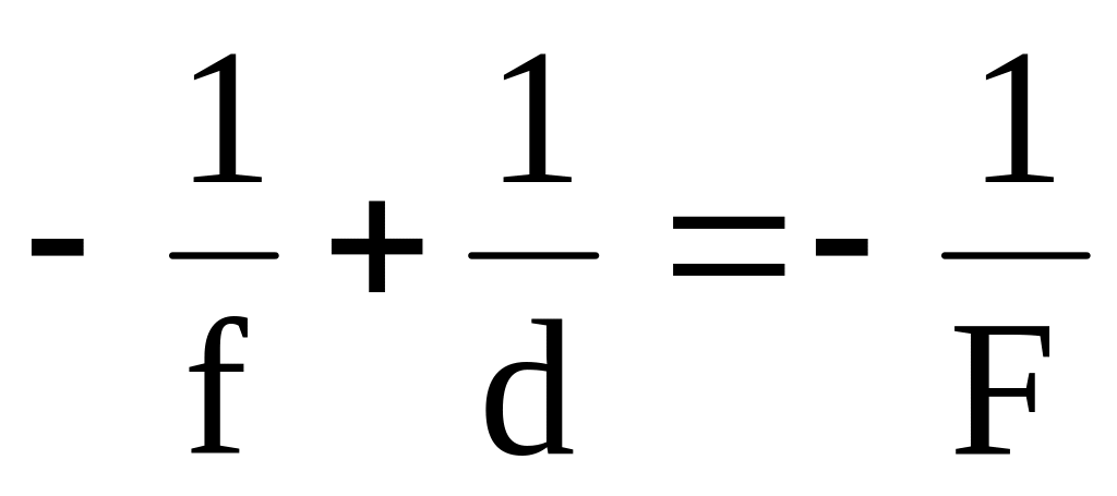 Для рассеивающей линзы предмет и изображение всегда лежат с одной стороны линзы (изображение мнимое), и поэтому формула линзы принимает вид: