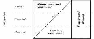 Зазначені якості необхідні на різних рівнях управління організацією у різному ступені (рис. 1.4).