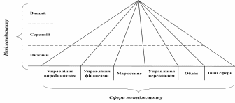 Рис. 1.3. Співвідношення сфер і рівнів менеджменту