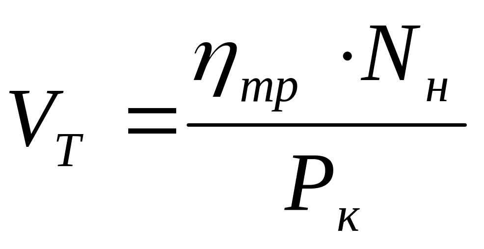 Теоретическая скорость трактора определяется из соотношения