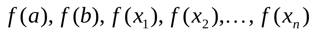 Алгоритм поиска наибольшего и наименьшего значения функции , непрерывной на отрезке .