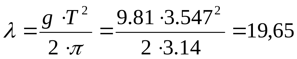 Для определения h1% проверяем наличие мелководной или глубоководной зоны, если Н1 < 0,5λ то зона мелководная, если Н1 > 0,5λ то зона глубоководная (7,0 < 9,83). Имеем мелководную зону. Тогда h1% определится по формуле: