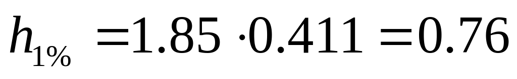 Для определения h1% проверяем наличие мелководной или глубоководной зоны, если Н1 < 0,5λ то зона мелководная, если Н1 > 0,5λ то зона глубоководная(7,0>5,15) .Имеем глубоководную зону. Тогда h1% определится по формуле: