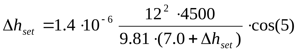 Решая квадратное уравнение, находим, что Δhset = 0,0028 м.