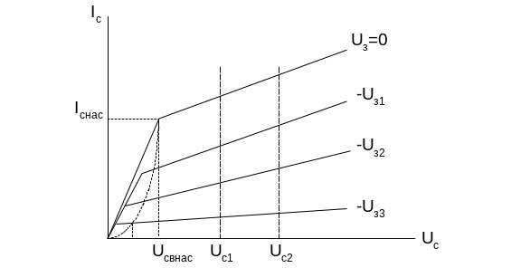 і при UЗВ = Uнас струм через канал буде відсутній.