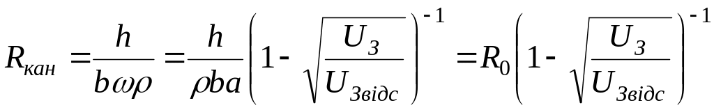 Опір каналу буде визначатися геометричними розмірами і питомою провідністю каналу.