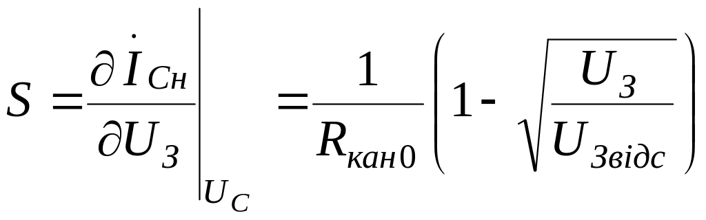 Аналізуючи залежність крутизни вольт-амперних характеристик, можна зробити наступні висновки. Для збільшення крутизни вольт-амперних характеристик необхідно збільшувати напругу відсічки струму стоку. В той же час робочою ділянкою вольт-амперних характеристик є лінійна ділянка. А виходячи з цього треба зменшувати величину напруги насичення. В зв’язку з тим, що Uнас = UЗвідс , то отримали протиріччя, яке вирішується шляхом оптимального вибору крутизни вольт-амперних характеристик, яка лежить в межах від 1 до 5 мА/В.