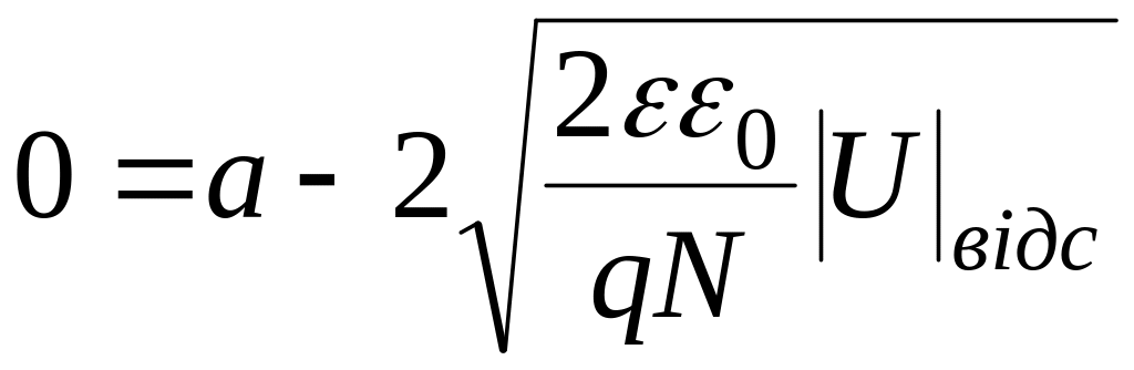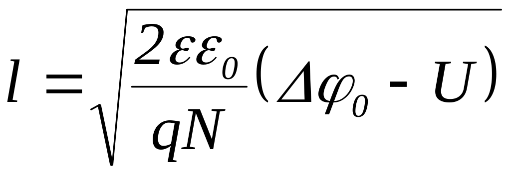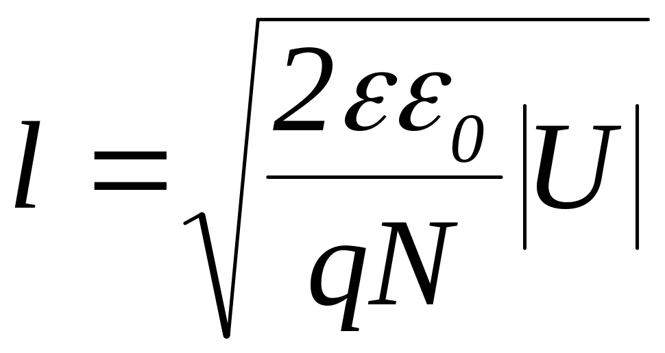 Ширина потенційного бар’єру l залежить від концентрації носіїв заряду і діелектричних сталих. Знайдемо, що ширина переходу буде: