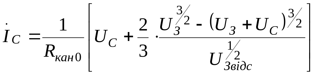 Для знаходження струму насичення скористаємось тим, що напруга стоку і затвору для любого випадку повинна бути рівна напрузі UЗвідс .