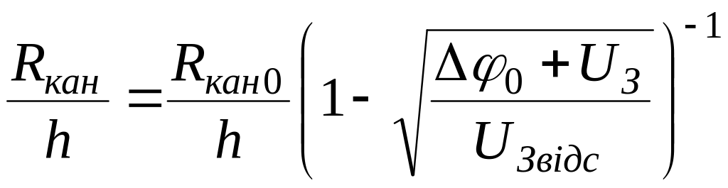 Точніше значення ширини каналу, знаючи напругу відсічки, можна визначити як функцію напруги на затворі.