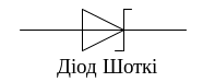 Рисунок 10 Перехідні процеси та еквівалентна схема імпульсного діода і позначення діода Шоткі