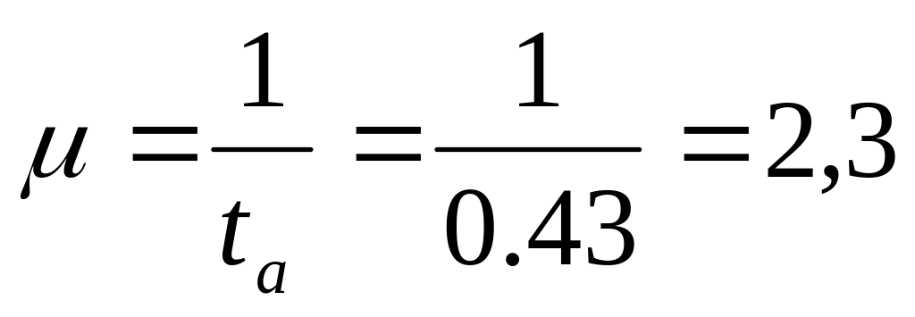 Тепер підрахуємо інтенсивність обслуговування (пропускну здатність чи продуктивність одного автомобіля):