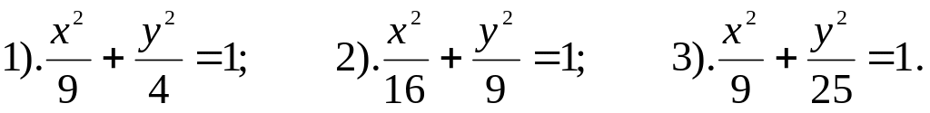 16. Написать уравнение эллипса симметричного относительно осей координат, зная, что: 1) его большая полуось равна 5 и параметр с равен 3; 2) эллипс проходит через точку М(4;21), имеет эксцентриситет = 0,75 и его фокусы находятся на оси Ох; 3) эллипс проходит через точки А(6; 0) и М(23; 6).