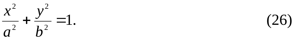 Иногда рассматривают уравнение вида (26), в котором ab. Оно тоже является уравнением эллипса, но при этом фокусы F1 и F2 находятся на оси ОY на расстоянии с = b2 – a2) от центра, их координаты равны (0, –с) и (0, +с). Теперь, эксцентриситет = с/b и характеризует степень сжатия эллипса по оси ОX.