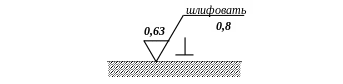 Рис. 50. Обозначение шероховатости поверхности, полученной удалением материала шлифованием с перпендикулярным направлением неровностей при числовом значении параметра шероховатости Ra = 0,63 мкм на базовой длине 0,8 мм