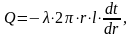 Тепловой поток, передаваемый через цилиндрическую стенку, направлен по радиусу от центра к периферии и равен: