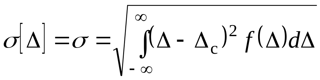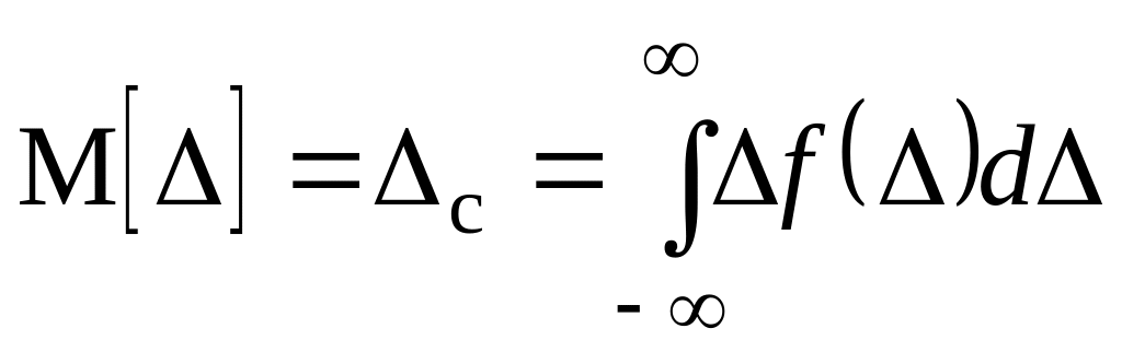 Основными характеристиками погрешности Δ являются: функция распределения F(Δ), плотность вероятности f(Δ), математическое ожидание = Δс и среднеквадратическое отклонение σ(Δ) = σ. {1К10}