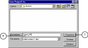 ри необходимости в диалоговом окне Save Project1 As в поле Имя файла указать новое имя проекта, отличное от имени по умолчанию.