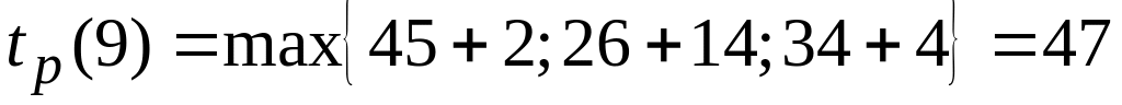 Спочатку за формулою (2.1) знаходимо ранні строки здійснення події й заносимо їх у ліві сектори мережевого графіка. Маємо:
