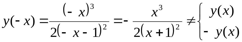 Условие четности или нечетности не выполнено. Заданная функция –функция общего вида.