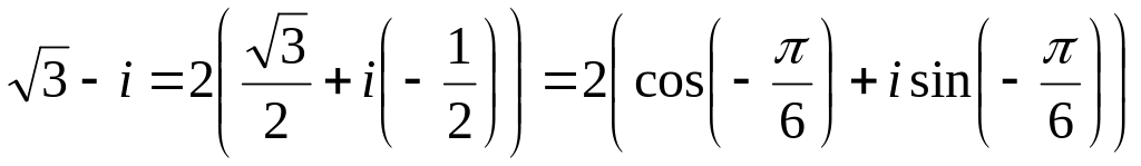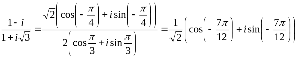 1) Представим сначала числитель и знаменатель дроби в тригонометрической форме:
