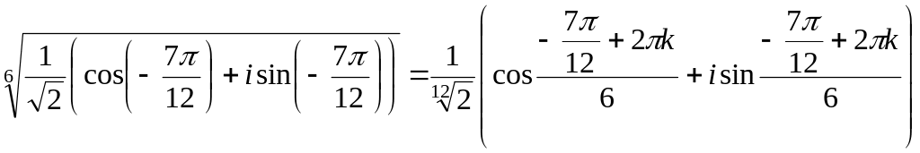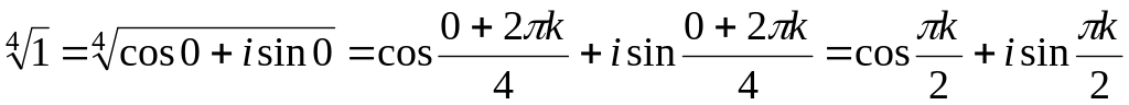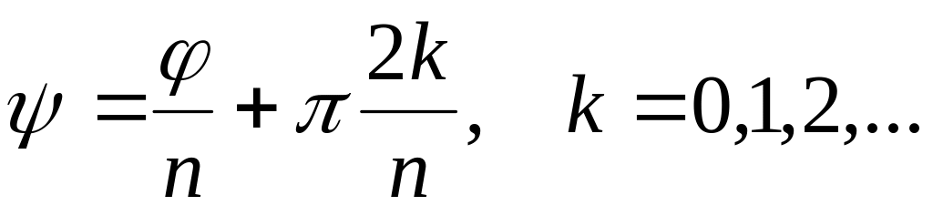 Таким образом, корнем -й степени из комплексного числа является группа из чисел.