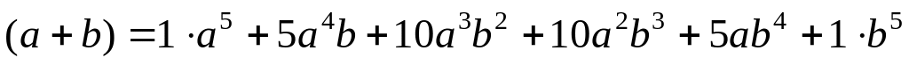 Для возведения выражения в 5-ю степень воспользуемся треугольником Паскаля: