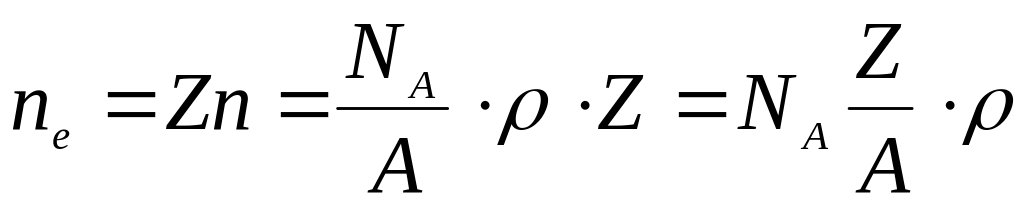 где NA – число Авогадро, Z и A – заряд и атомный вес среды, а ρ – плотность среды.