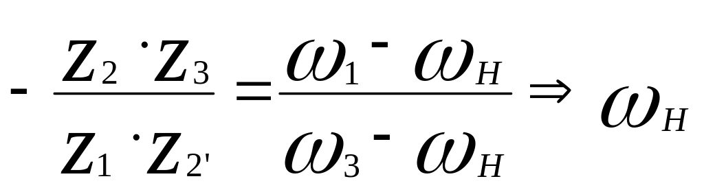 Предположим, что нам заданы числа зубьев всех колёс z1, z2, z2’, z3 и угловые скорости 1 и 3. Необходимо определить угловую скорость водила н.