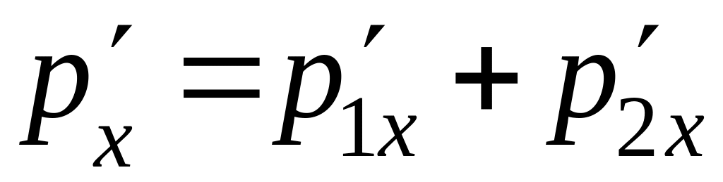В проекции на ось OX импульсы шаров после удара будут равны: