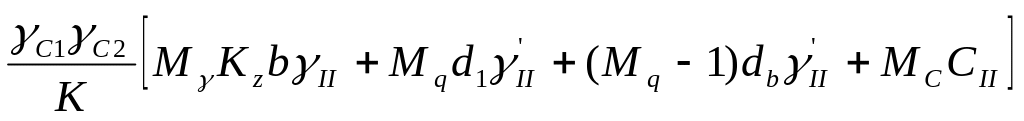 К – коэффициент надежности, принимаемый равным 1, когда прочностные характеристики грунта (C и φ) определены непосредственными испытаниями и К = 1,1, если они приняты по таблицам;