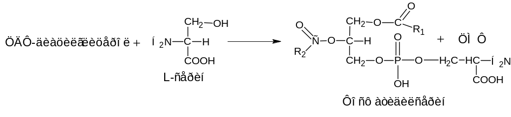 Затем происходит перенос серина на фосфатидильный остаток с образованием фосфатидилсерина: