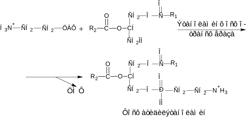 Активированный ЦДФ–этаноламин при участии фермента этаноламинфосфаттрансферазы вступает в реакцию с L–диацилглицеролом с образованием фосфатидиламина: