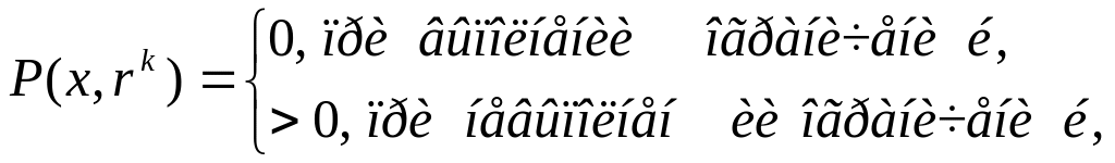 д) При решении задач процедура расчётов завершается при некотором конечном значении параметра штрафа . При этом приближённое значение, как правило, не лежит в множестве допустимых решений, т.е. ограничения задачи не выполняются. Это является одним из недостатков метода. С ростом параметра штрафа генерируемые алгоритмом точки приближаются к решению исходной задачи извне множества допустимых решений. Поэтому обсуждаемый метод иногда называют методом внешних штрафов.