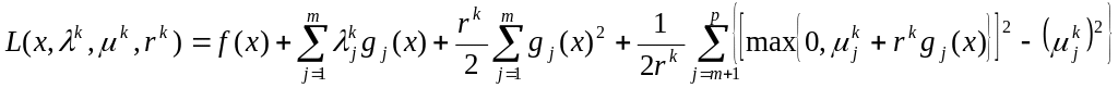 Стратегия аналогична используемой в методе внешних штрафов, только штрафная функция добавляется не к целевой функции, а к классической функции Лагранжа. В результате задача на условный минимум сводится к решению последовательности задач поиска безусловного минимума модифицированной функции Лагранжа: