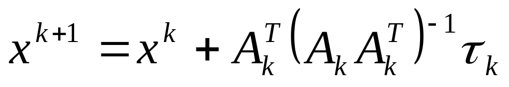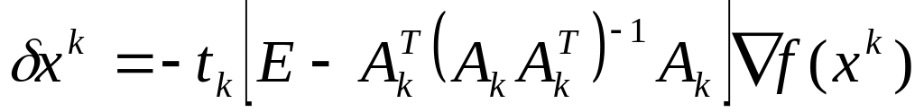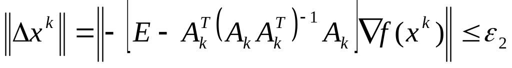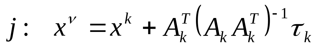 затем снова вычисляются невязки выбранных p ограничений. Уточнение по формуле (4.2) осуществляется до тех пор, пока не будет найдена точка , в которой . Проекция вектора в точке , в которой активны p ограничений, определяется точкой