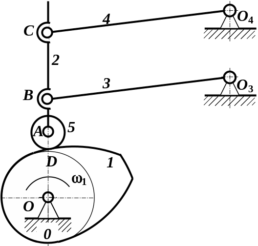 Рассмотрим примеры построения мгновенных механизмов, которые заменяют разные типы кулачковых механизмов (рис. 1.12).