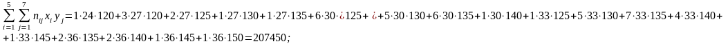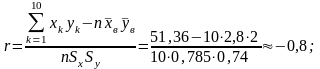 В случае небольшого числа испытаний выборочный коэффициент корреляции вычисляется по формуле: