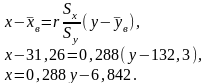 Подставляя полученные результаты в уравнение прямой регрессии Y на X, получаем