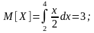 интервале (0; 2), вне этого интервала f (x) = 0. Найти математическое ожидание и дисперсию величины X.