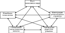 По мнению ведущих западных специалистов в области логистического менеджмента, основными движущими силами современной глобализации являются [2,12]: