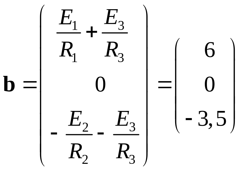 Теперь нам понадобится диагональная матрица проводимостей, которая равна обратной диагональной матрице сопротивлений и матрица ЭДС.