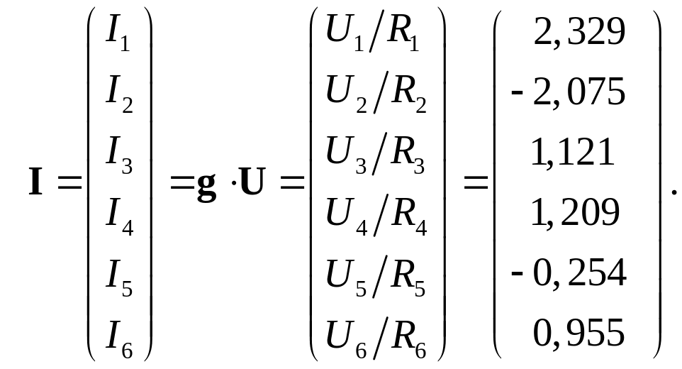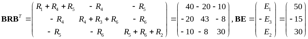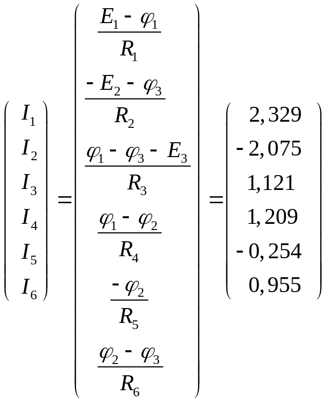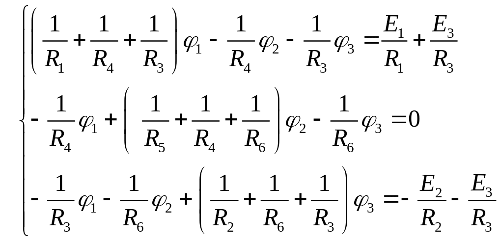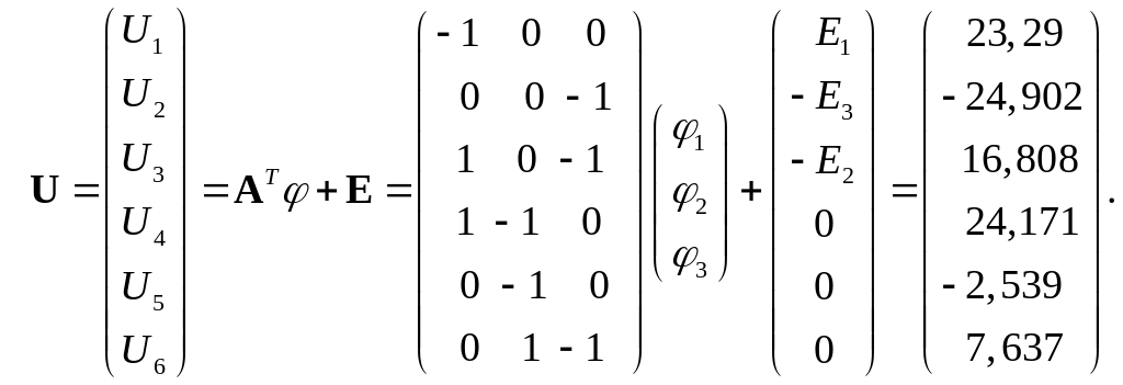 Теперь можно найти потенциалы узлов, используя следующие соотношения:
