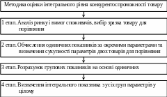 Методика оцінки рівня конкурентоспроможності товару як інтегрального результату дії багатьох чинників передбачає проведення розрахунків у декілька етапів (рис. 9).