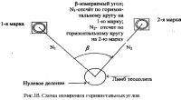 Схема измерения горизонтальных углов, образованных двумя направлениями, показана на рис. 18.