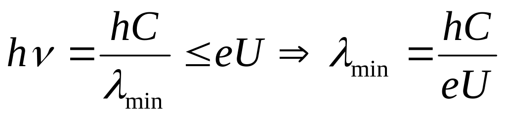Тормозное РИ возникает из-за замедления, которое электроны испытывают при торможении в веществе. Оно имеет непрерывный спектр, имеющий коротковолновую границу. Существование такой границы следует из того, что энергия излучаемого фотона не может превысить энергию электрона, торможение которого вызывает излучение. Электрон с зарядом приобретает свою энергию за счет ускорения электронным полем с разностью потенциалов U, поэтому энергия равна eU . Значит, должно выполняться условие: