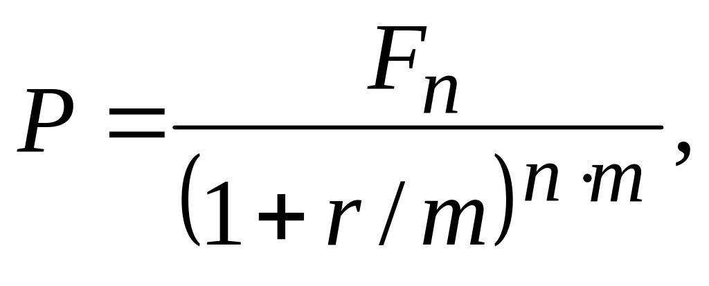 Сучасне значення вартості майбутньої суми грошей розраховується за допомогою формули: